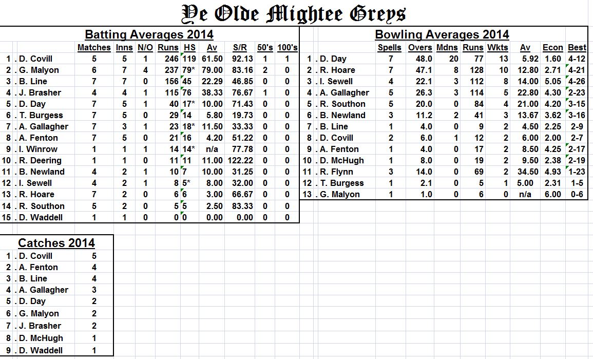 Shorn of Jerry from the top of the order due to complex selection policies, and a sore thumb, Del continued as a reluctant opener and never really hit the smooth flowing run accumulation to which we have become accustomed. Citing a hangover (since when has that been a excuse ? It makes most Greysmen bat better- maybe that’s what being a proper cricketer is all about), he was well caught behind, after an innings which was naturally still peppered with some lovely shots.
