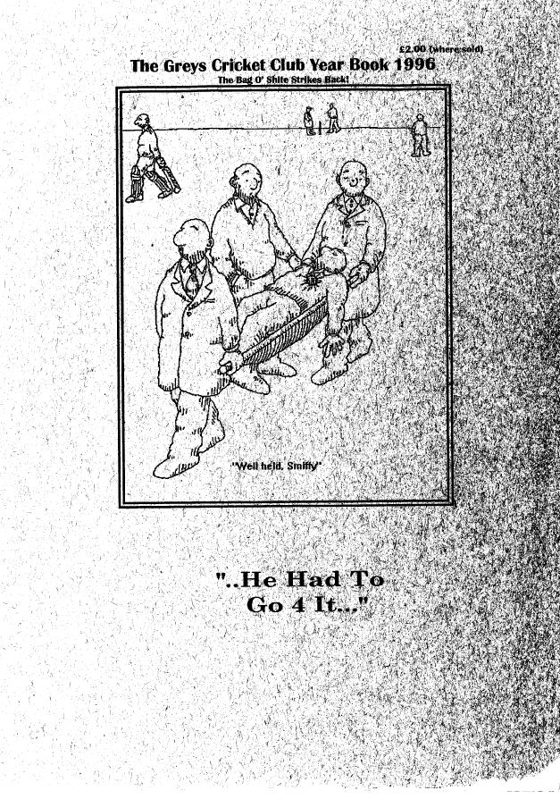 he-had-to-go-4-1996-1 Published July 29, 2014 at 627 × 894 in “He Had To Go 4 It – #4” – The Greys Cricket Club Year Book 1996 Next →