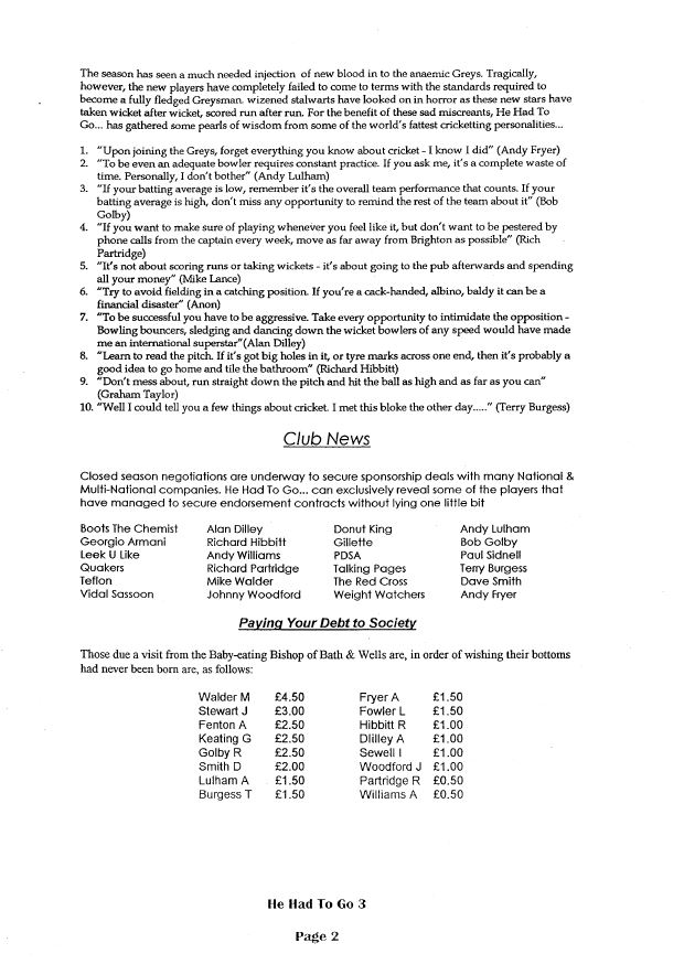 he-had-to-go-3-1995-4 Published July 29, 2014 at 620 × 884 in “He Had To Go Free – #3″ – The Greys Cricket Club Year Book 1995 ← Previous Next →