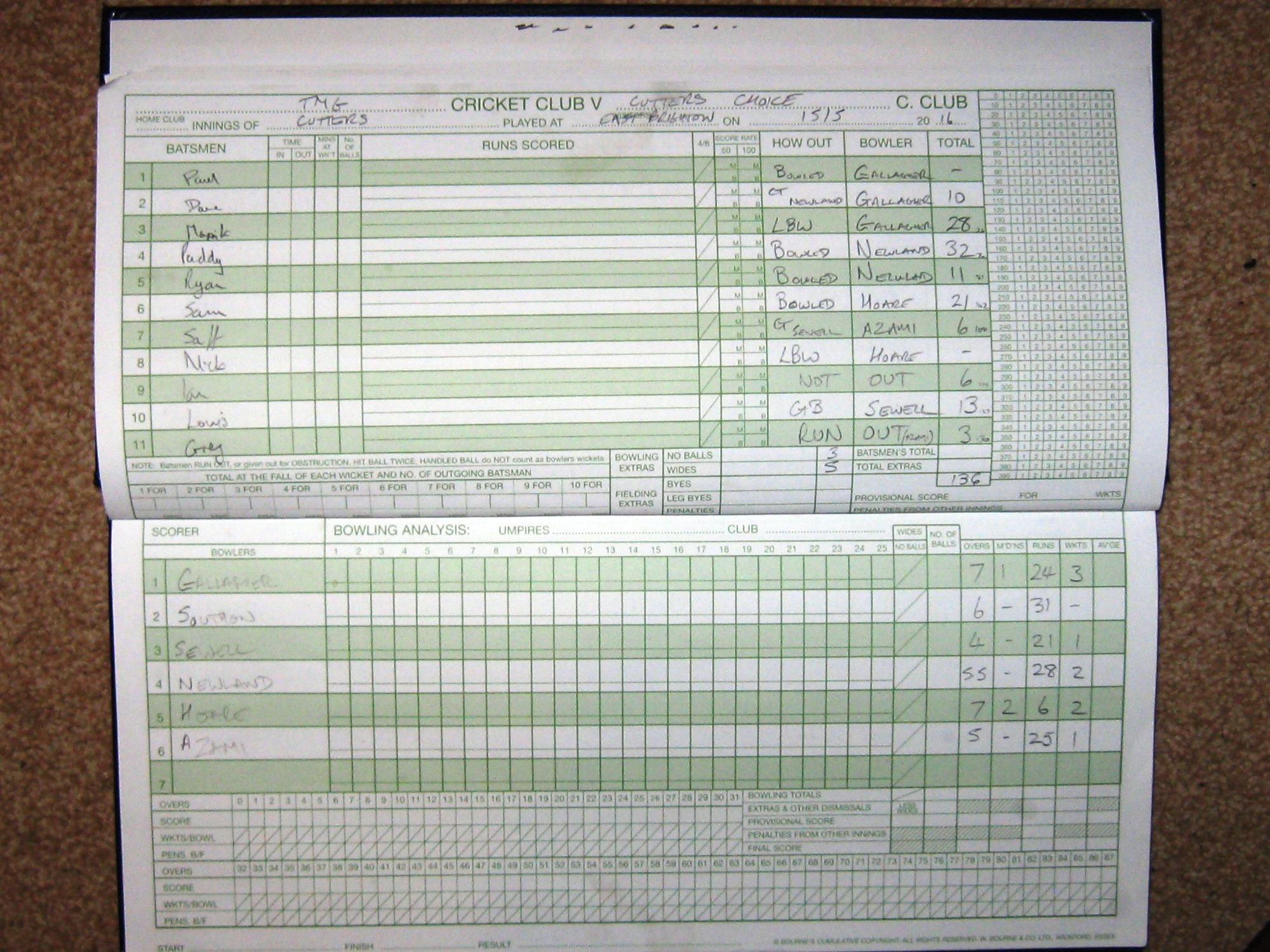 By the time their 35 overs were done, Cutters Choice had amassed 136 and the Greys thought they had bowled pretty well.
