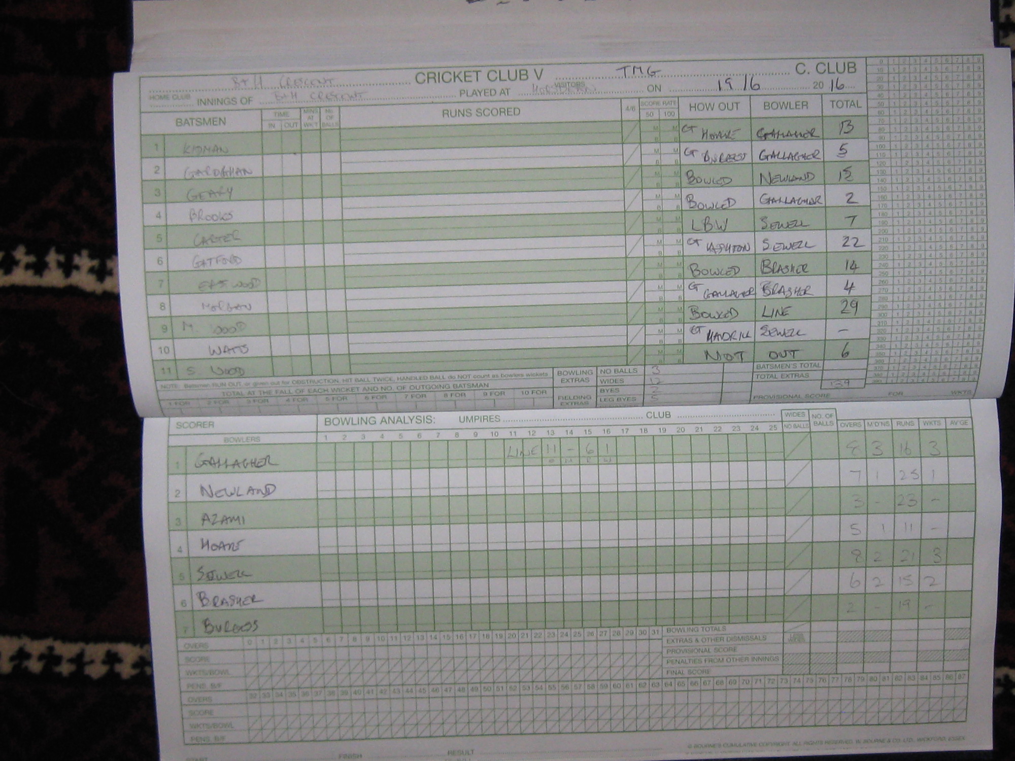 Not sure who won the toss but the Greys found themselves in the field. Gallagher and Newland have cemented their respective places in the opening bowling partnership and ball in hand they set about the Crescent batsmen.