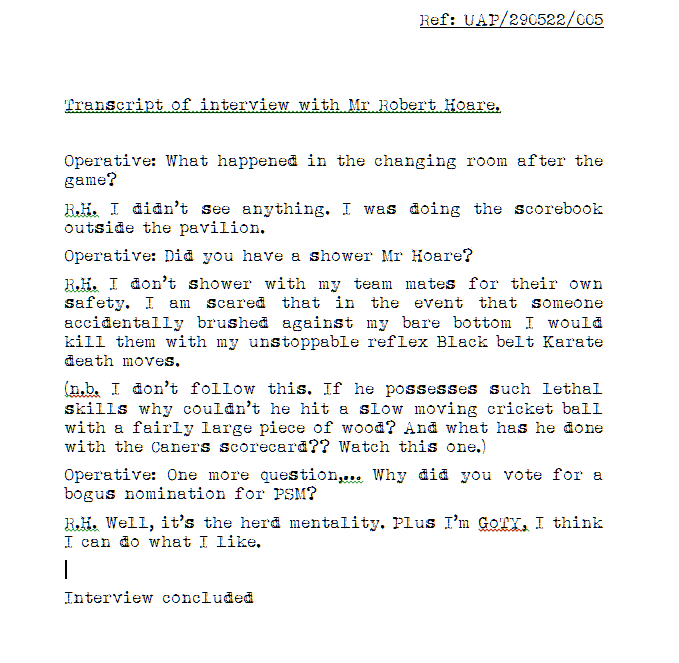 They logged details, photographed the scene and took statements from all present. That evidence has lain gathering dust until now when the truth can finally be revealed. What follows are the actual files and transcripts from our vault. The notations in parenthesis to interview transcripts were made contemporaneously by an experienced senior operative.