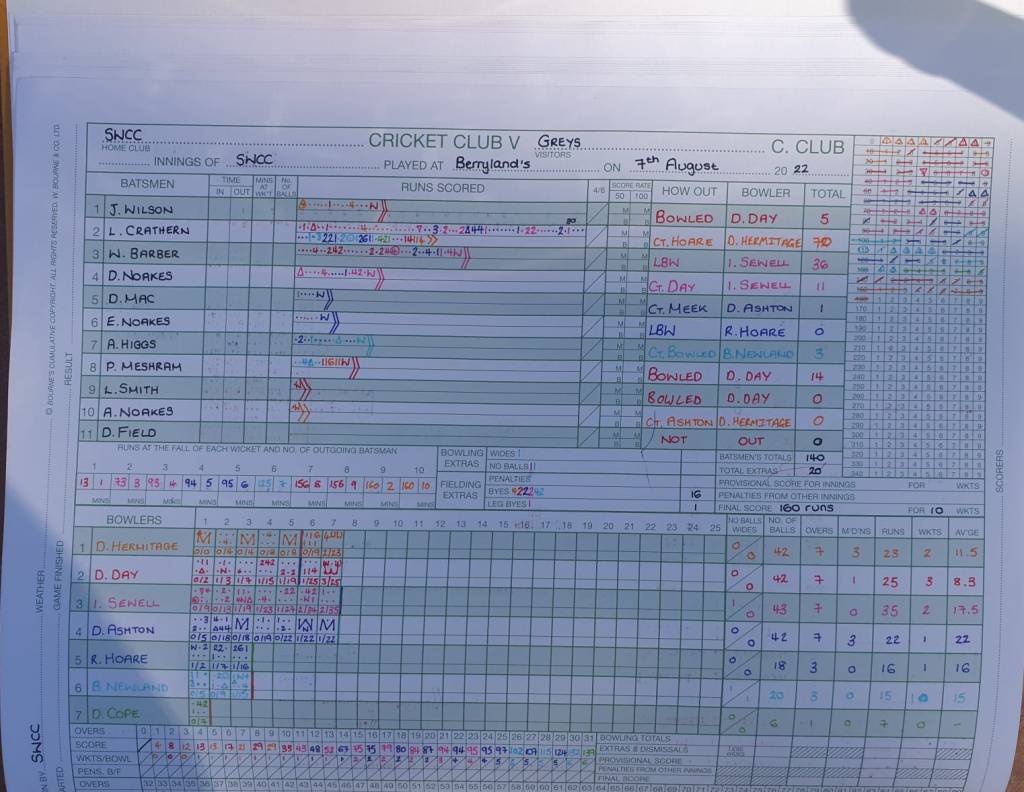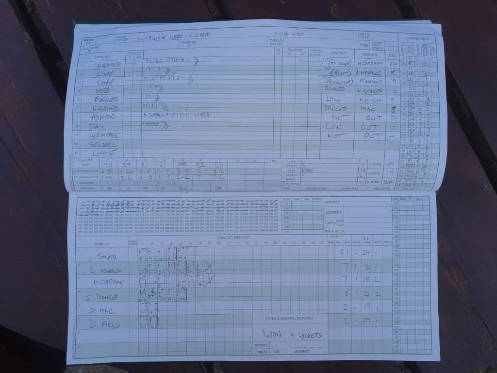 Goes to the Southwick scorer who’s neat, colour coded scorebook is a work of art.