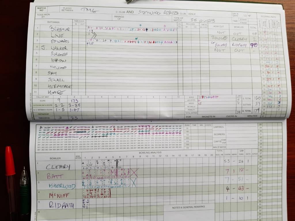 Jerry and Clunk proceed to make short work of the run chase scoring 164 off 21 overs with Clunk scoring 90 off 65 balls.