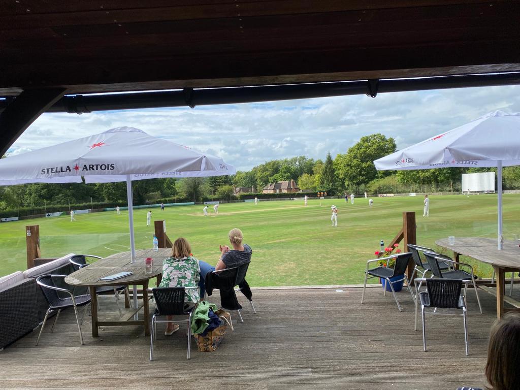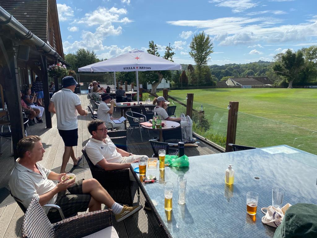Greys skipper, Ben, joined Terry at the crease and looked to press on and in doing so felt the need to run Terry out for a season’s highest 37. Ian strode to the crease shirt unbuttoned to his navel and chest hair coiffed. He set about the Mayfield attack with gay abandon smashing 13 off 8.