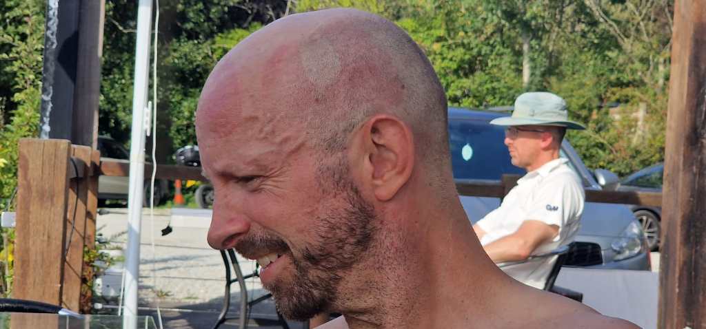 Dan’s departure, caused by missing one that if he had connected with would have sent the ball into orbit, brought in Chiefy for a quick cameo that was only ended by the interruption and distraction of a deadly opposition wasp (….’that’s an Asian Hornet!’). Such tactics really should be outlawed in Sunday cricket. Unfortunately, not even Eo’s chest-pump bowler psych-out tactics, Biff’s temporary sight loss for Eo’s stumping appeal and Robbie’s determination to see the overs out could prevent the inevitable. Grey’s finished on 159 all out.