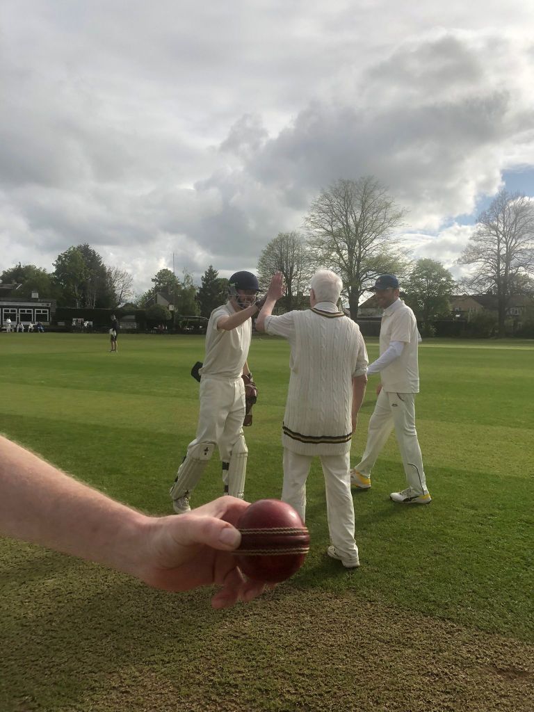 Adam, under parental crowd pressure and Delboy, having stepped in to make up the numbers, went early. Both falling victim to significant movement on a bowler’s track. Dunc and Biffo steadied the ship and set a platform for Dom to continue his charity mission of donating cricket balls to deserving families who live within a halfmile of a ground. Assisted by Robbie H, Alex and DD he made an undefeated 65 bringing the Greys to 160 for 7 after 35.