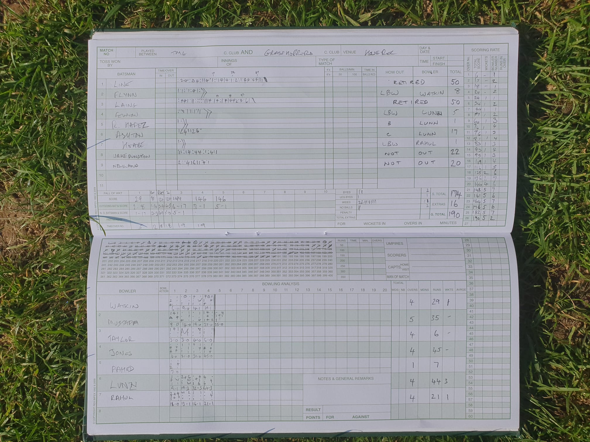 The Hoppers were done, all out for 189. Other notable fielding contributions Biff’s now customary knee slide catch; Jake’s 3 catches in one as he juggled a sharp chance to take it at the third attempt; Tim’s sharp catch at mid off; and Ricky’s whole bowling spell every ball on the money and 2 wickets for naff all.