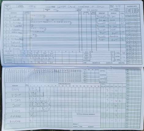 In the bowling the skipper seems determined to hand the trophy to Diamond as he doesn’t bowl himself for another week. The flame hair hipster is now only 2 runs behind. Season’s best bowling figures, this week, for James F and yours truly both bagging a brace for the first time this year.
