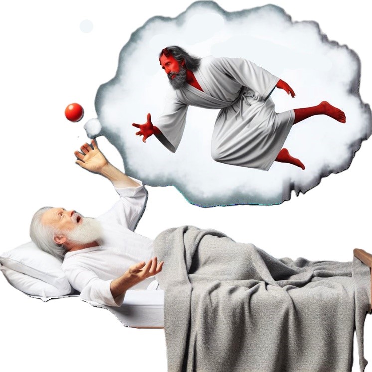 Jesus Christ! Suddenly I’m awake and lying on the floor next to my bed.  What am I doing down here?  Must have had too much to dream AGAIN last night.  But who was that in my dream?  And what day is it today?   I look at the clock radio.  11.20 a.m.  It’s Easter Sunday, I’m playing cricket today and Jerry and Alex are coming to get me in…..ten minutes!  Yikes!