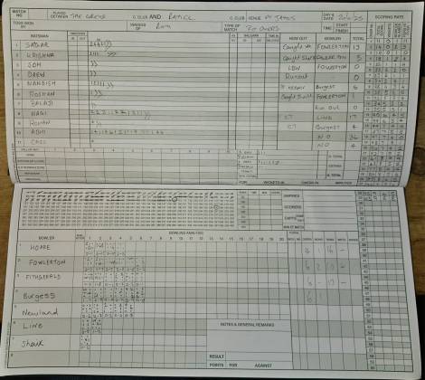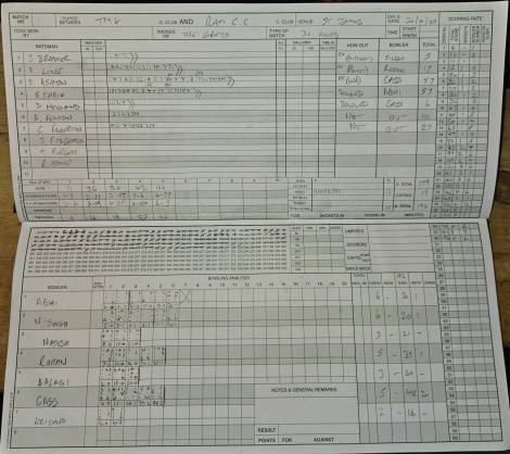 With runs, wickets and a run out, it could only be one person, but he didn’t want to write about it.  “I’ll scribe it”, I said.  “But my scripture might not be the gospel truth”.