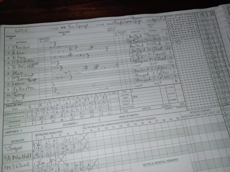 With the score on 25, Tommy Nicks came in and despite riding his luck a little, played nicely for a quick 22, before inexplicably deciding to play a full on switch hit, or maybe just a reverse sweep, I’m not sure and may have had a can of lager obscuring my line of sight at the time. The result was a sharp catch at gulley.