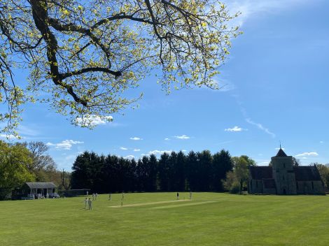 Anyway, Temple Grove would make a great set for a Midsomer Murder type cricket based mystery and is probably one of the most attractive grounds TMGs have ever played on. The weather was doing it’s part, too, with the temperature best described as “jumpers optional”, which we will always take in mid April. Old church on one side and a stately home tucked away on the other and with a decent wicket, it won’t stay a hidden gem for long.